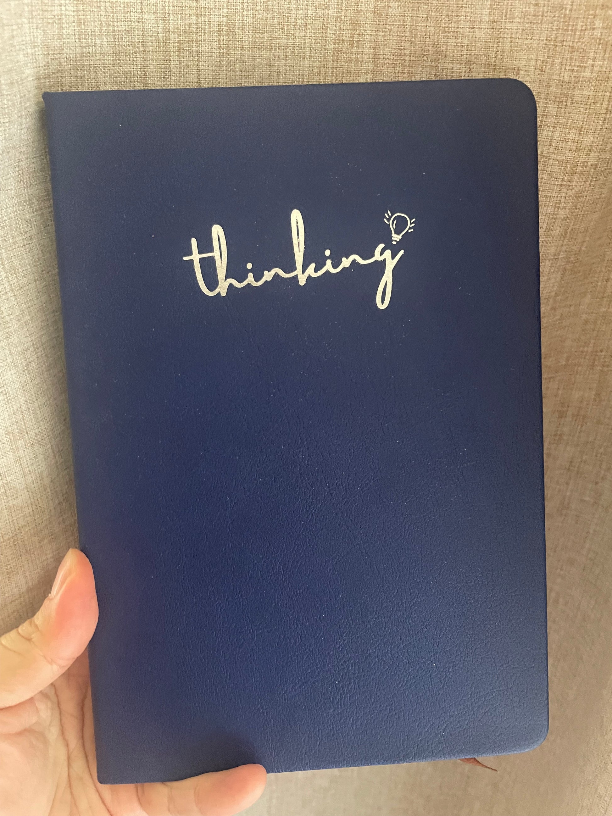 An A5 sized elastic strapped notebook with waterproof blue leather covering.